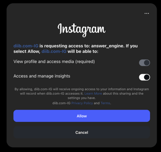 4. Allow the connection.A small pop-up will appear asking you to connect diib to your Instagram account. Click Allow.